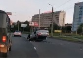 Renault устроил тройную аварию и перевернулся в Челябинске
