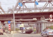 В Челябинске автомобиль перевернулся на рельсах под мостом