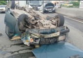 Женщина не справилась с управлением и съехала в кювет, после чего машина перевернулась.