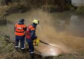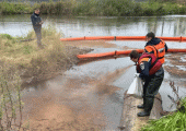 На реке Миасс в Челябинске стартовали работы по очистке воды от нефтепродуктов