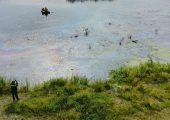 В Челябинске на реке Миасс вновь появился нефтяной след