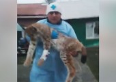 Есть предположение, что рысь содержалась в домашних условиях.