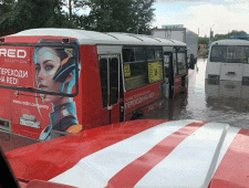 В Челябинске автобус после ливня застрял в огромной луже, пассажиров спасали сотрудники МЧС