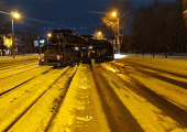 В Челябинске автовоз занесло на трамвайные пути, движение остановлено