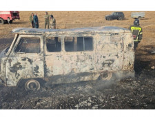 «Буханка» сгорела до остова на полевой дороге в Челябинской области
