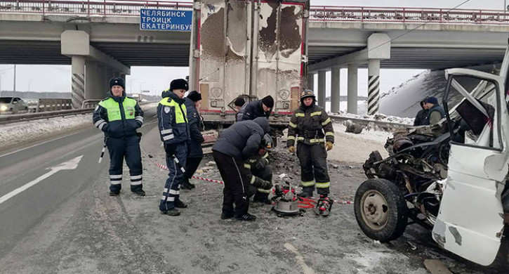 Под Челябинском грузовик на большой скорости влетел в остановившиеся машины, снес их водителей