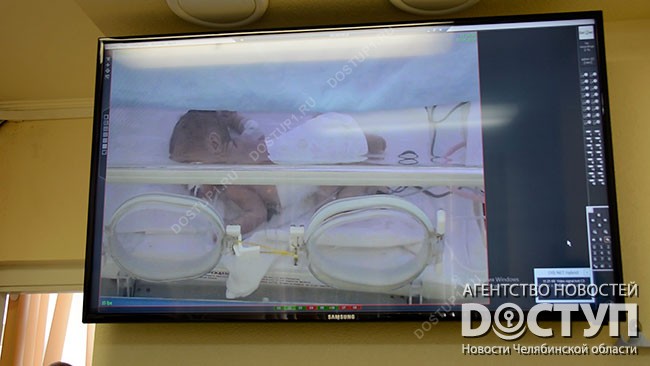 Это выглядит, как своеобразный телемост в режиме онлайн. На одном конце – новорожденный, находящийся в реанимации в Златоусте, на другом – врач, сидящий в отделении Челябинской областной клинической больницы. Маленького пациента с доктором связывают десятки датчиков, передающих его пульс, артериальное давление, температуру и прочее на один экран, а также видеокамера. Она показывает самого малыша – на другом.
