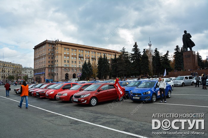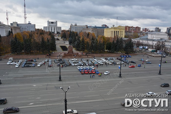 В День автомобилиста челябинцы поздравили себя и город необычной акцией – местные автолюбители выстроили на центральной площади муниципалитета слово «Челябинск» и российский триколор из машин, передает корреспондент Агентства новостей «Доступ».