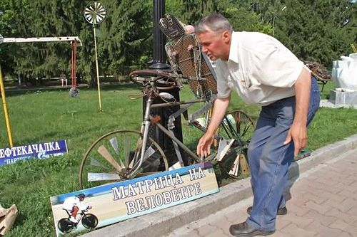 Также в коллекции жителя Верхнего Уфалея – скульптуры «Верба-металлист», «Колыбель человечества», медведь на велосипеде с лозунгом «Вперед на кризис», самоходные часы и другие инсталляции.