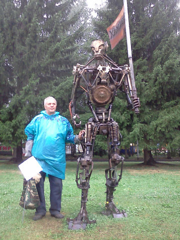 Художник-авангардист уже прославился в Челябинской области и соседнем Екатеринбурге своими необычными работами из металлолома. Именно он стал автором скульптуры «Слон на Муравье», представленной в 2010 году на фестивале «ЛОМ» в столице Среднего Урала. Вместе с ним в мероприятии приняли участие около 30 российских и украинских художников.