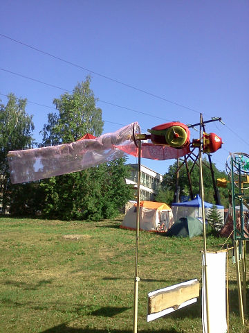 «Метеорит прилетел, и все о нем говорят. У меня родилась идея, как его можно сделать. Он из чего получается? Голова и хвост. Сосед мне дал пылесос какой-то. А кто знает, голова метеорита из чего – из камня или пылесоса? [пылесоса] из Кореи или нет?» – рассказывает техноскульптор, отмечая, что конструкция не только будет выполнять функцию флюгера, но и станет украшением фазенды или дома.