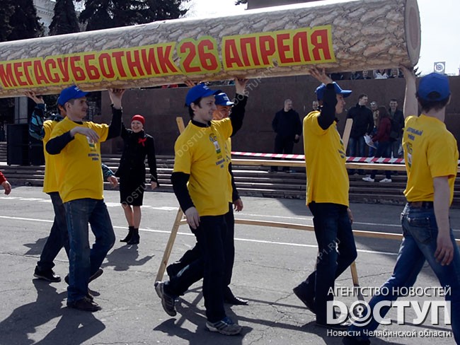 В Челябинске дан старт очередному, третьему по счету, Мегасубботнику, который пройдет 26 апреля. Традиционным символом единения трудящихся во благо экологической уборки города стало бревно, которое носил товарищ Ленин во время легендарного субботника 1920 года.